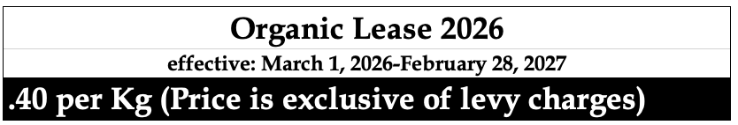 - $0.0185/kg effective June 6, 2021 (Period A-170)