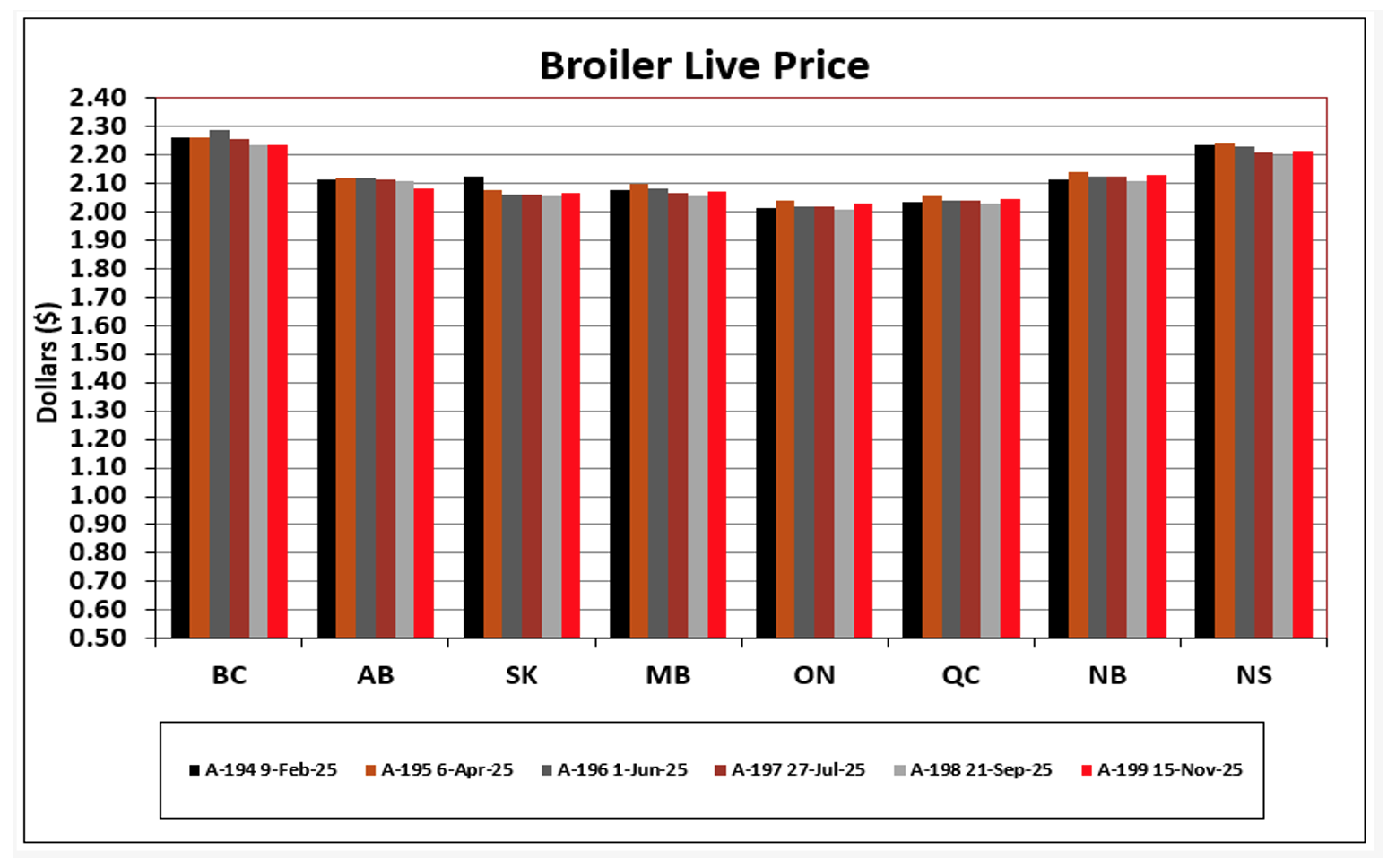 - $2.1089/kg Effective September 21, 2025 - November 15, 2025 (A-198)