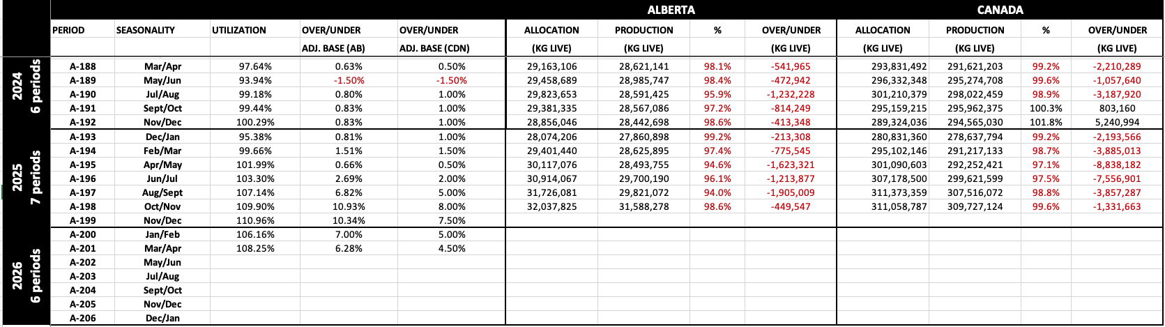 - $2.0834/kg Effective November 16, 2025 - January 10, 2026 (A-199)