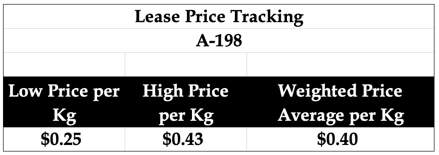- $2.1623/kg Effective June 30, 2024 - August 24, 2024 (A-190)