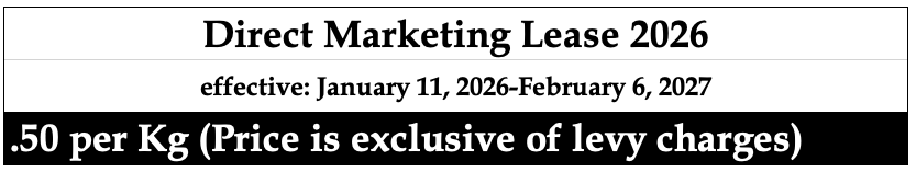- $2.1099/kg Effective January 11, 2026 - March 7, 2026 (A-200)