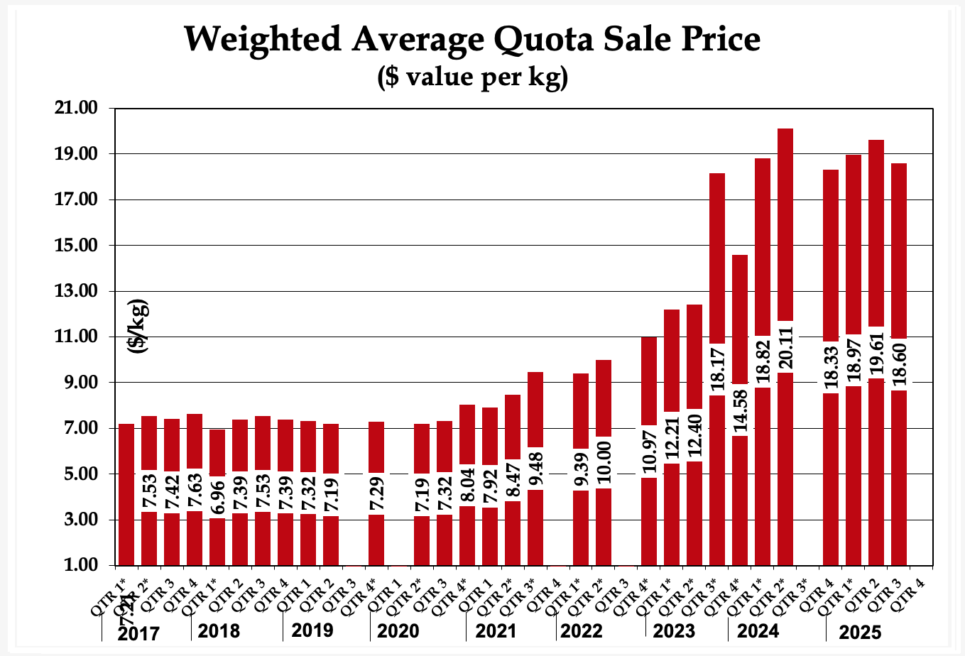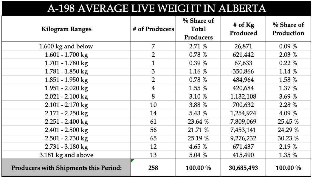 - $2.1089/kg Effective September 21, 2025 - November 15, 2025 (A-198)